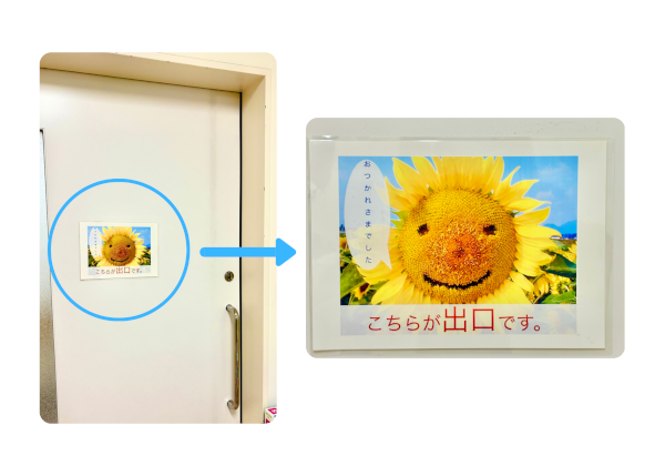 その当時に導入されたCTが現在も稼働しており、14年ぶりに再会しました。その時に患者さんが退出するドアに貼っていた写真です。