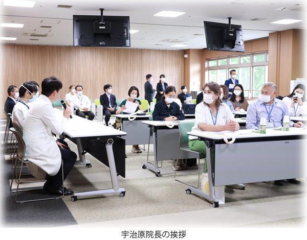 初めに宇治原院長から、「医療は国境を越えて人々の健康を守る重要な役割を果たしています。キルギスの皆様と知識と技術を共有し合うことで、世界中の患者さんにより良い医療を提供できると信じています。どうぞ私たちの施設を自由に見学し、スタッフと交流し、たくさんの質問をしてください。皆様の学びが深まり、今後のキルギス国の医療活動に役立つことを心から願っております」と挨拶をしました。