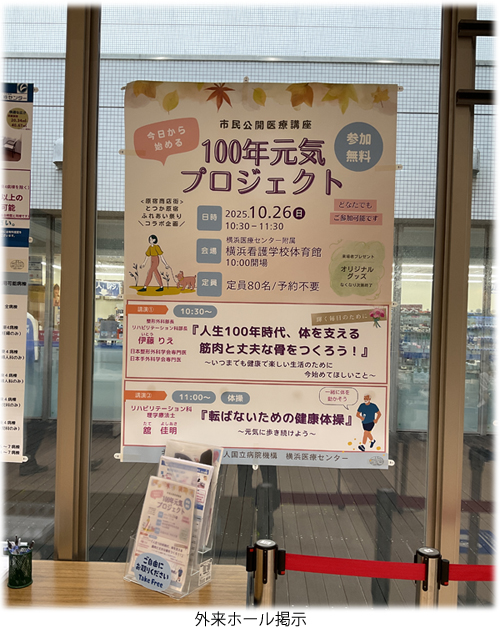 また「とつか原宿ふれあい祭り」コラボ企画として、敷地内にある附属看護学校の体育館で公開医療講座を開催します。(*雨天決行)