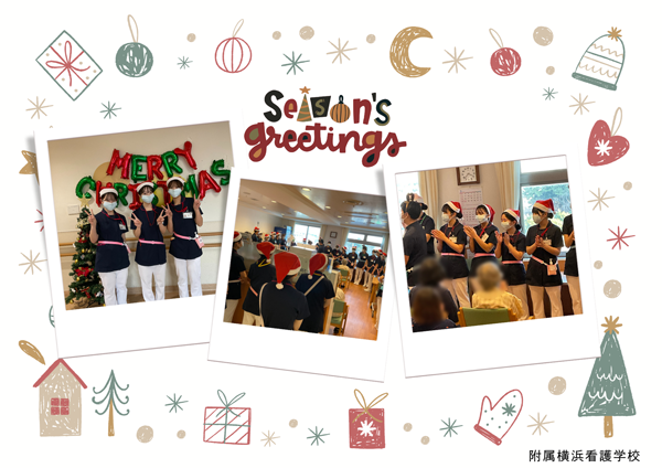 その後、全学年の学生がグループに分かれ、各階のデイルームにて和やかな雰囲気の中で「あわてんぼうのサンタクロース」と「サンタが街にやってくる」の2曲の歌のプレゼントを贈ってくれました。