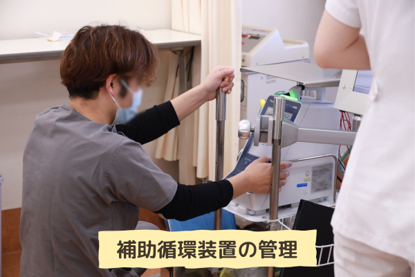 • 人工心肺装置:手術中に心臓と肺の代わりとなる装置で高度な知識と技術を必要とします。心臓の手術はこれがないと始まりません。