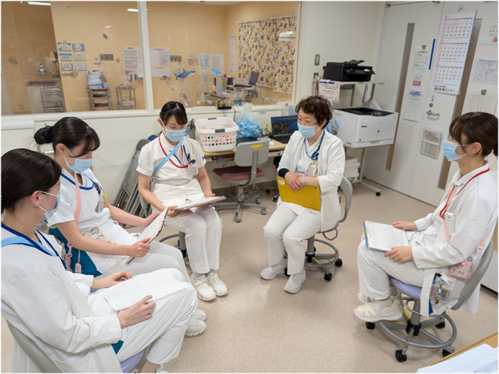 また、学生の思いに寄り添いながら、病棟スタッフの皆さんと協力し、より良い学びの環境づくりに取り組むことも教員の大切な役割です。日々情報共有や意見交換を行い、学生が安心して実習に臨めるよう支援しています。
